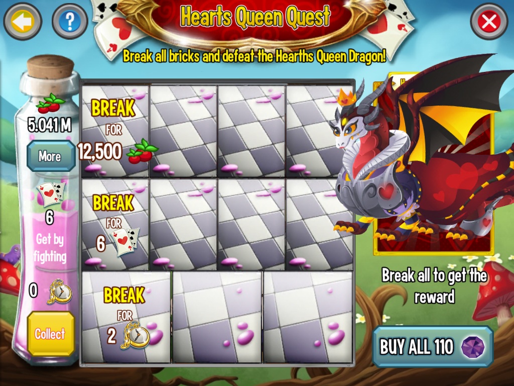- Para obter o Dragão corações Rainha você deve coletar todos os itens de cada tipo (total 98) e vencer todas as lutas do castelo! Histórico